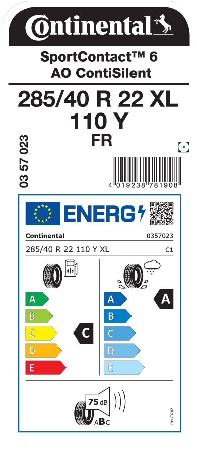 Continental SportContact 6 285/40 R22 110Y XL AO ContiSilent