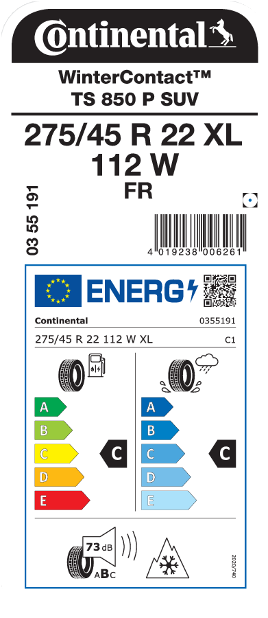 Continental WinterContact TS850 P SUV 275/45 R22 112W XL